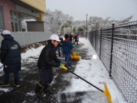 今朝の雪で、学校も一面真っ白になりました。登校した子どもたちは、さっそく朝のボランティア活動として除雪に取り組みました。寒いなかでしたが、学校のために一生懸命がんばってくれました。ありがとうございました。