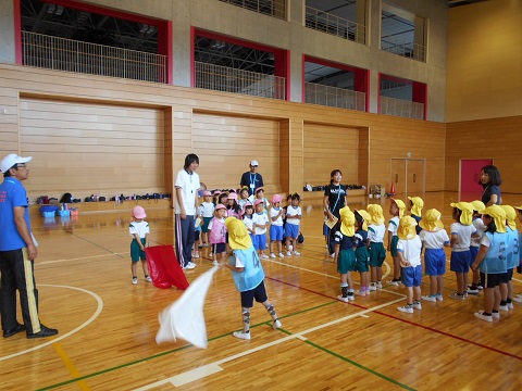 今日は9月2日(金)に行われる「船引町幼稚園合同運動会」に向けての合同練習会がありました。みんな緊張気味ではありましたが、ダンスやリレー、団体競技などの練習を一生懸命がんばりました。運動会当日は、練習の成果が存分に発揮できることと思います。