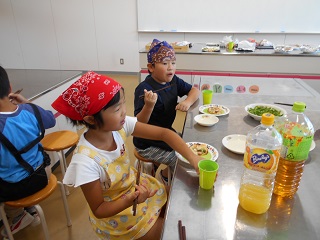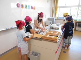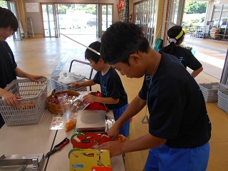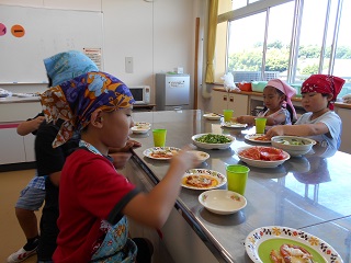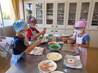 今日、2・3年生は「ピザパーティー」を行いました。春から学校の畑で育てた、ピーマンやトマトなどを具材にしてみんなで協力してピザを作りました。野菜づくりのご指導をいただいた保護者の方においでいただき楽しい時間を過ごすことができました。