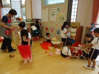 今日芦沢幼稚園に船引南幼稚園と緑幼稚園のお友だちが来園し、三園で楽しく交流しました。体育館でダンスを踊ったり、保育室で思い思いに遊んだりしました。子どもたちの元気いっぱい、笑顔いっぱいの交流保育となりました。