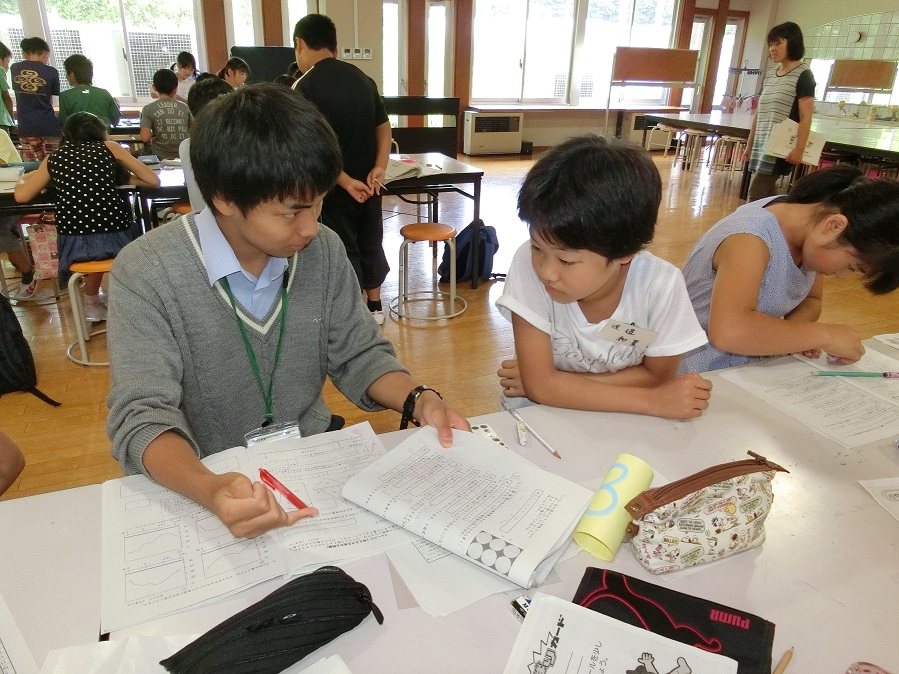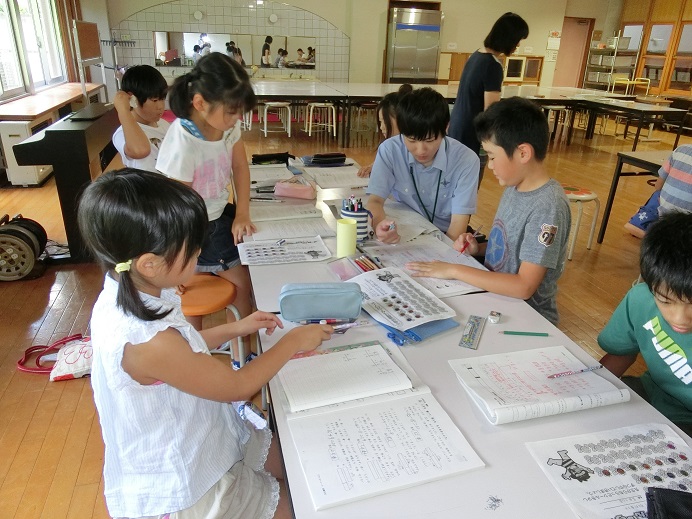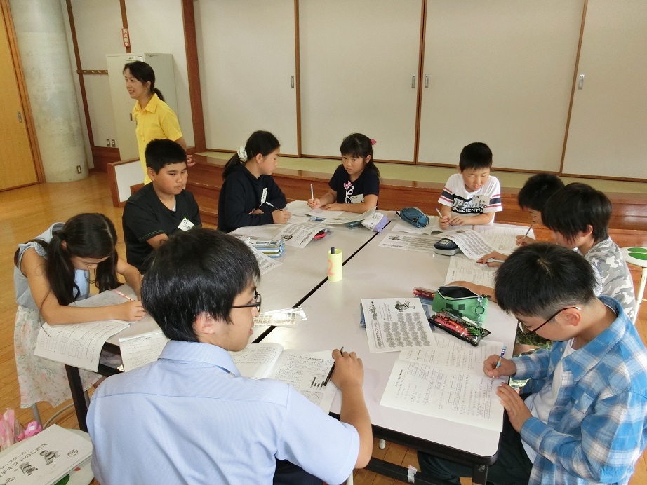 7月28日(木)と29日(金)の2日間、本校5年生は船引南小学校にて、算数のサマースクールに参加してまいりました。3名の高校生に先生となっていただき、コース別学習を行いました。高校生先生の適確なアドバイスにより、みんな真剣な眼差しで学習に取り組むことができました。