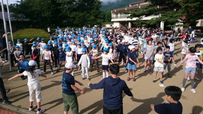 芦沢小学校と船引南小学校のみんなで記念写真を撮りました。