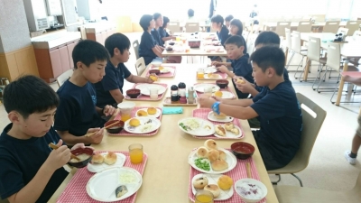 那須甲子自然の家の朝食は、焼きたてのパンが食べられます。みんなで美味しくいただきました。