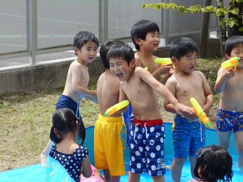 今日は晴天で気温も上がり、芦沢幼稚園では楽しくプールで遊びました。水に入ったときの感触や水しぶきに大歓声。みんなプールが大好きです。