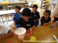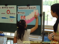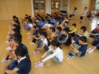 今日は、2・3年生が歯の染め出しをしました。歯のクイズは、なんと全問正解!!みんなで競って答えてくれました。染め出しでは、歯の表面が意外と磨けていませんでした。次回の染め出しでは、◎になれるよう意識して磨きましょう。150g~200gの力加減も上手にできていました。