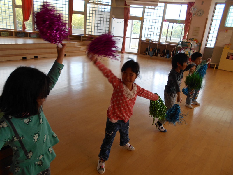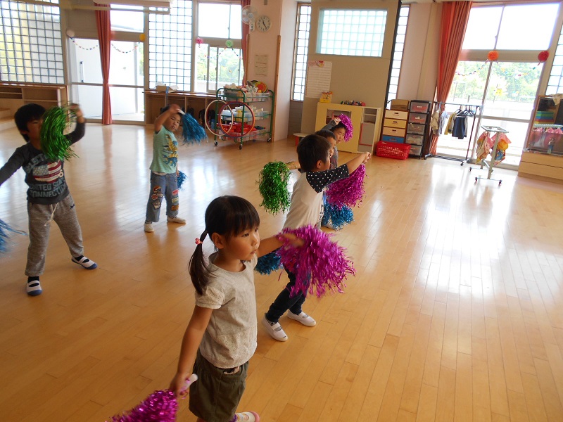 芦沢幼稚園の子どもたちは、今度の保育参観に向けて、ダンスの練習に夢中です。曲に合わせて跳んだり回ったり、振り付けを覚えるために一生懸命練習しています。お家の方、保育参観待ってます。