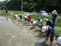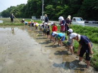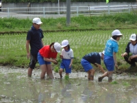 今日5・6年生とひまわり学級の子どもたちが「あしっこ学校田」に田植えを行いました。子どもたちは、稲作づくりの講師の先生方に教えていただきながら作業を行いました。田んぼに足をとられそうになりながらも真剣な表情で丁寧に苗を植えていました。次回は草取り作業を行う予定です。
