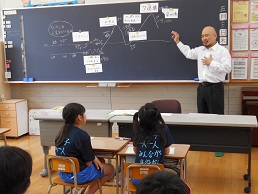 まず、夢先生と一緒に運動します。そして次に、夢に向かって努力することの大切さを話していただきました。子ども達は一人一人将来の夢を思い描き、発表することができました。