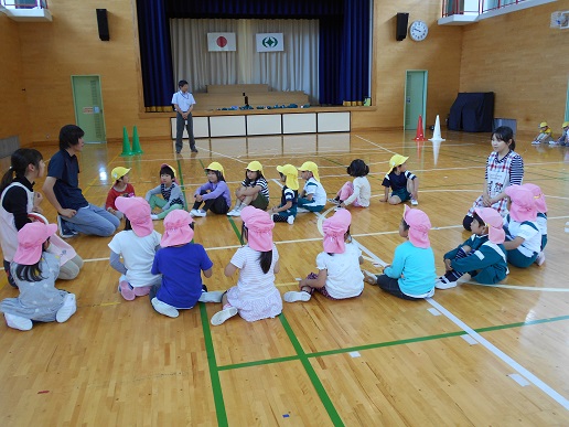2016年6月1日 11時04分 今日は、芦沢幼稚園、船引南幼稚園、緑幼稚園、3園の交流保育を行いました。会場は芦沢幼稚園です。今年度はじめの交流保育なので、まずは自己紹介。みんな大きな声で自分の名前を言うことができました。そして、体育館で一緒に体操したりリレーをしたりしました。2時間という短い時間ではありましたが、楽しく交流して友だちもできました。また、お会いしましょう。