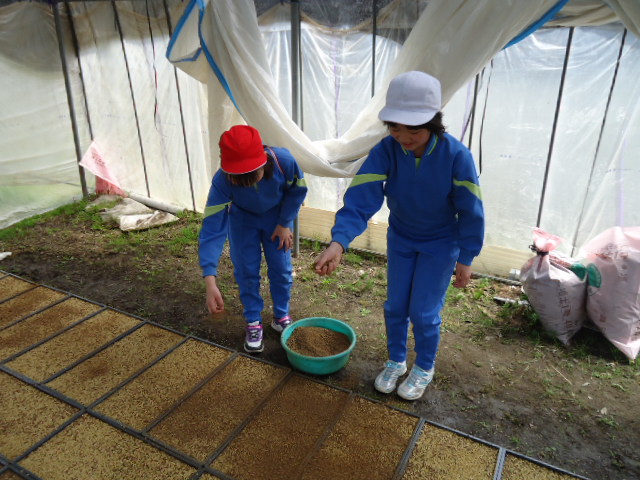 芦沢小学校では、今年度も保護者の方々や地域の方々のご協力をいただきながら、5・6年生を中心に稲作体験を実施いたします。今日の作業は、種まきです。講師の先生のお話を聞き、作業をさせていただきました。およそ1ヶ月後には田植えの作業の予定です。理科や社会、総合的な学習の時間の学習内容を実際の体験を通して学ぶことができるのは、大変貴重です。ご協力に感謝申し上げます。