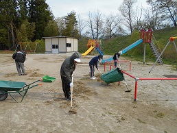 本日午後3持より、地域のボランティアの方々によりまして、校庭の除草作業を行っていただきました。5月14日(土)に行われる大運動会に向けて、地域の方々にも応援していただいております。大変感謝申し上げます。