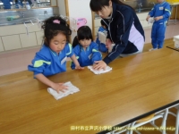 給食が始まり、今日で1週間が経ちました。給食を残さず食べること、給食後の片付けが上手にできることは、あしっこの素晴らしい伝統です。お兄さんお姉さんに教えてもらいながら、1年生も上手にできました。