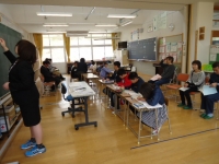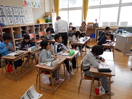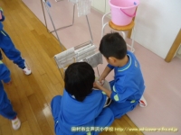 3年生では、いよいよ毛筆の学習が始まります。今日は学習支援ボランティアの佐藤幸枝様を講師にお招きし、毛筆学習の準備の仕方や筆の持ち方等のご指導をいただきました。子ども達は、筆をそおーっと墨液につけたり筆の先をていねいにそろえたりと、真剣な表情で練習しました。