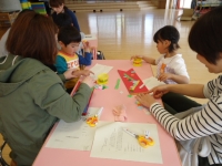 今日は今年度第1回保育参観が行われました。親子で楽しくこいのぼり作りです。子ども達は、はさみの使い方を真剣に聞いています。はやく使いたいです。色紙をゆっくりとていねいに切って、一人一人個性のあるこいのぼりを完成させることができました。
