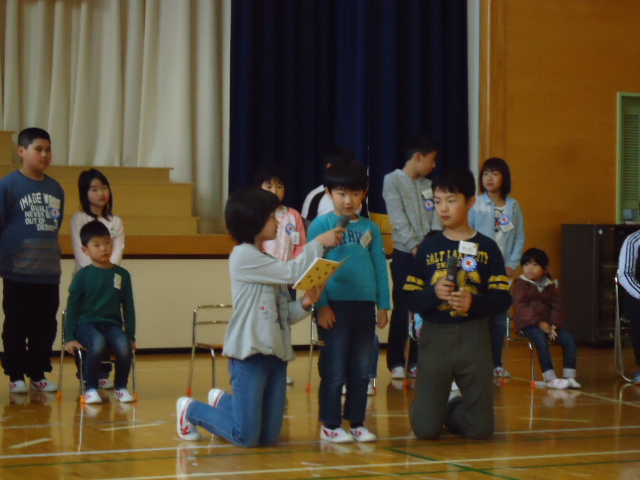 今日は児童会のみなさんによる「1年生を迎える会」が行われました。1年生は少し緊張した表情で入場してきましたが、楽しいゲームのあいだにすっかり仲よしになりました。明日からも元気に学校へ通って、楽しい学校生活を送りましょう。
