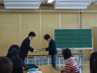 16日の授業参観後 PTA会長名の掲板式と保護者全体会が行われました。その中では、前PTA会長様はじめ3名の前PTA役員の方々に感謝状が贈呈されました。