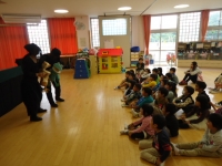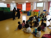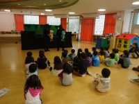 今日、芦沢小学校で緑幼稚園・船引南幼稚園のお友だちが来園し、一緒に運動したり、劇団「赤いトマト」の方々が演じる人形劇を見て楽しく過ごすことができました。