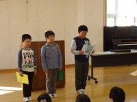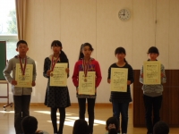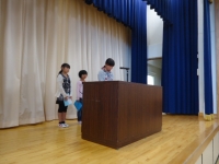 代表児童3名が、前期にがんばったことや後期にむかってがんばりたいことを堂々と発表しました。また、朝ごはんコンテスト・理科作品展・市陸上大会の表彰も行われました。3連休が終わると13日から後期のスタートです。後期もあしっこパワー全開!でがんばてくれることでしょう。