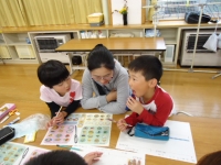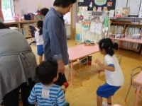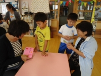 18日に芦沢幼稚園で祖父母参観が行われました。参観ではおじいちゃん、おばあちゃんといっしょにだんごをつくって食べたり、竹とんぼやけん玉、あやとりなどをして遊んだりして楽しい時間をすごしました。また、感謝の気持ちを込めてプレゼントも贈り、おじいちゃん・おばあちゃんたちも笑顔いっぱいでした。