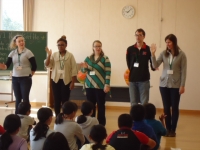 6日(火)7日(水)の2日間にわたって、6年生を対象に英語集中プログラムが実施されます。船引南小と緑小そして芦沢小の3校の6年生が一緒に英語にふれあいます。子どもたちは、始めはやや緊張気味でしたが、ALTの先生やグループの友だちと協力して、さまざまなゲームを行っていくうちにどの子にも笑顔が見られるようになり、楽しそうに英語を学ぶ様子が見られました。