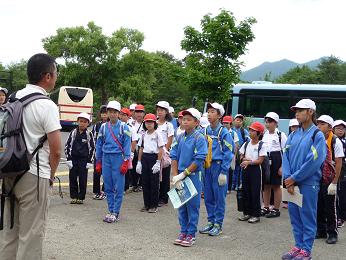 今日は一日、3つの班に分かれてのフィールドワークです。起床から朝食・出発式と5分前行動で気合十分。天気まで太陽を呼び込み、意気揚々です。