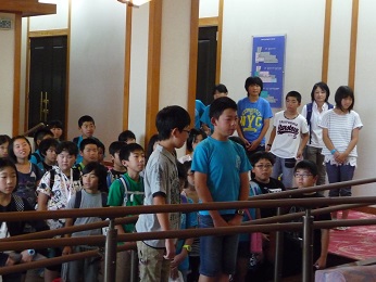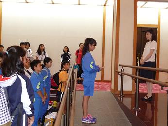 また、午後の日新館では「什のおきて」の講和を最敬礼でうかがい、施設内も船引出身のガイドさんに特別に説明していただきました。
