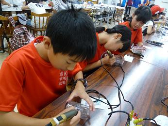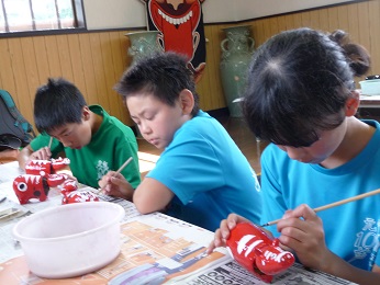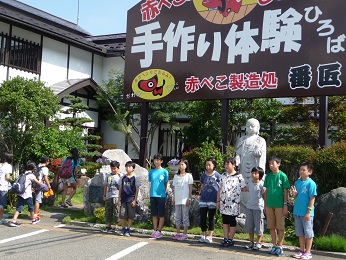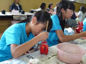 最終日は体験づくしです。まずは、赤べこの絵付け。次に漆の宝箱の絵付け。この体験活動で南小さんとお別れになり、各班長が互いに感想を述べ合い、交流の成果を確かめました。