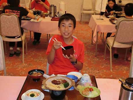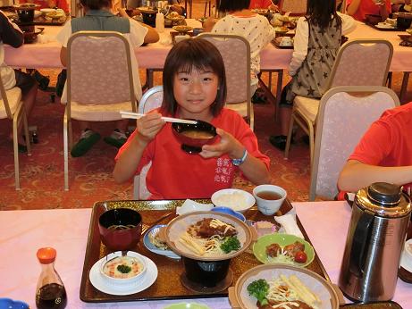 夕方5時すべての班が満面の笑みで宿舎に到着。今日の夕食は、1日がんばったあしっこたちには格別においしく感じました。