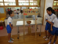 2015年7月17日 11時50分今日ランチルームにミニトマトやさんが開店しました。地域の名人さんに生活科で教えていただき、自分たちでミニトマトを育てていました。そのモニタリング検査が終了したので、ぜひ全校生にも食べてもらおうと2年生が考えて開いたお店です。お店はもちろん大繁盛!!ミニトマトを食べた子どもたちからは「おいしい!」「うん、あまーい。」という声がたくさんあがりました。