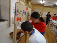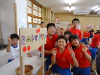 今日ランチルームにミニトマトやさんが開店しました。地域の名人さんに生活科で教えていただき、自分たちでミニトマトを育てていました。そのモニタリング検査が終了したので、ぜひ全校生にも食べてもらおうと2年生が考えて開いたお店です。お店はもちろん大繁盛!!ミニトマトを食べた子どもたちからは「おいしい!」「うん、あまーい。」という声がたくさんあがりました。