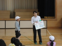 昨日行われました。避難訓練(防犯教室)では、「校内に不審者が侵入した」という想定で行われました。子どもたちは教師の指示を聞きながら真剣な表情で避難していました。担当の福島県警スクールサポーターや警察補導員の方からは「とても静かに移動しているので逃げているのに気づかなかった。」というおほめのことばもいただきました。