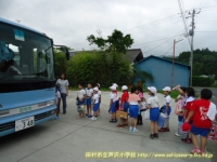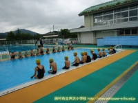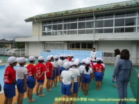 今日は、下学年生が始めての水泳学習です。子どもたちは朝からワクワク!バスで移動して、船引南小学校に到着!!元気にあいさつをしました。