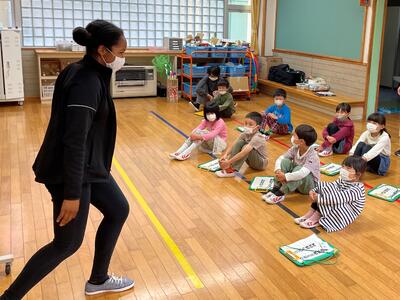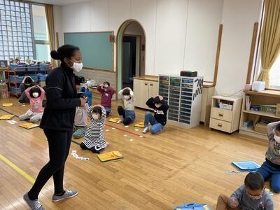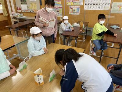 今日の2時間目に、1・2年生がニコル先生と外国語の学習をしました。今日は、好きな色について質問したり、答えたりしました。はじめに英語で赤や黄色などを何と言うのかを教えていただき、次にカードを使ってゲームをしました。最後にニコル先生や友達と好きな色について英語で会話をしていました。