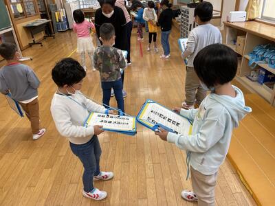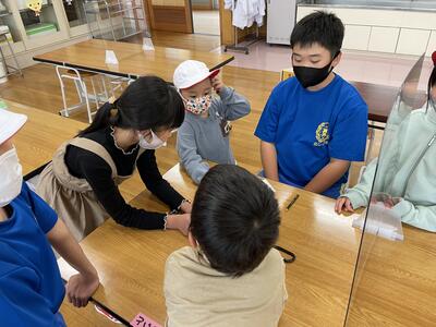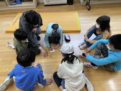 来週の水曜日に、縦割り班対抗リレーを行う予定です。今日のお昼休みに班ごとに集まって、走順を決めました。どの班も真剣に話し合っていました。今からやる気満々です!