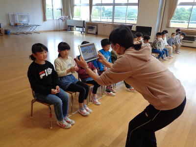 今日の3時間目に、1・2年生が船引南小学校の1・2年生とリモート交流をしました。明後日17日(金)に、船引町の児童公園で一緒に遊ぶ予定で、その前に、顔合わせとしてのリモート交流でした。南小学校のみんなの顔が大型テレビに映ると、みんな大喜び!明後日の児童公園がますます楽しみになりました!