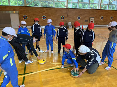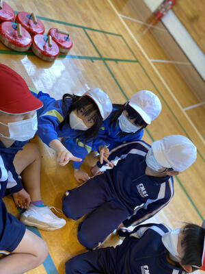 午後はフロッカーゲームです。南小学校のお友達とも相談しながらゲームを進めています。チームで作戦を立てながら、大盛り上がりで活動しています!