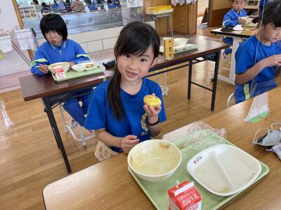 お昼です!みんなおなかがすいているようで、もくもく、もりもり食べています!