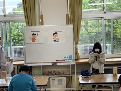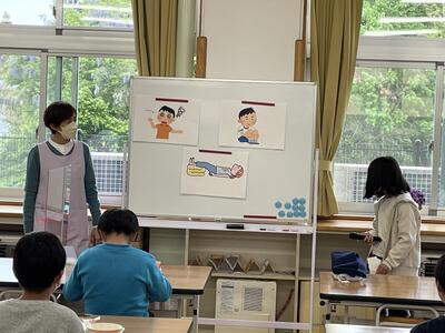 今日の給食の時間に、健康委員会から、とげが刺さった時の対処の仕方についてお話がありました。これから草木が生い茂ってきますので、不意に刺さってしまう時があると思います。みんなで気を付けるようにしたいです。
