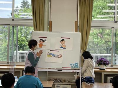 今日の給食の時間に、健康委員会の児童から脳貧血について、分かりやすい説明をしてくれました。脳に行く血液の量が減ってしまうと、気を失って倒れます。それが「脳貧血」とのことです。その場合の対処法についても図を使って説明してれました。脳貧血にならないためには、十分な睡眠と規則正しい食生活が大事とのことです。