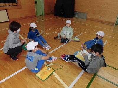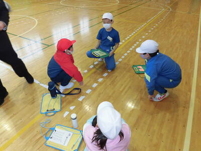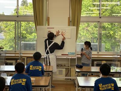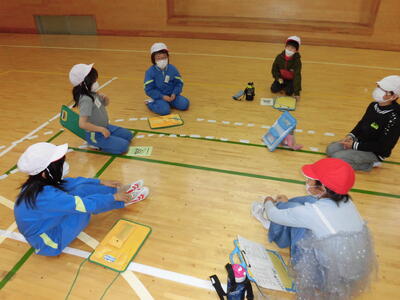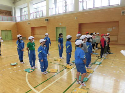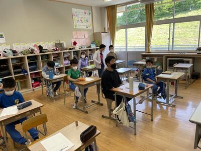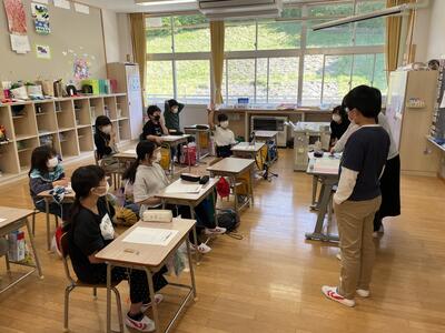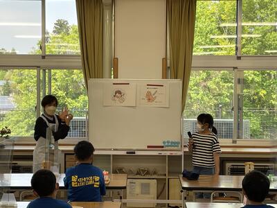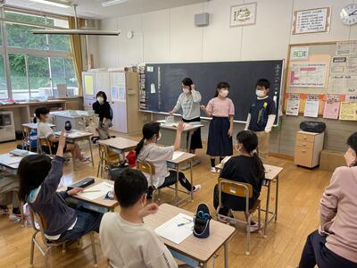 始めに、担任の先生方から体験活動のめあてについて話がありました。「思いやり」と「協力」を大切に活動してほしいという話でした。子ども達は真剣に話を聞き、先生の問いかけにも積極的に答えることができました。