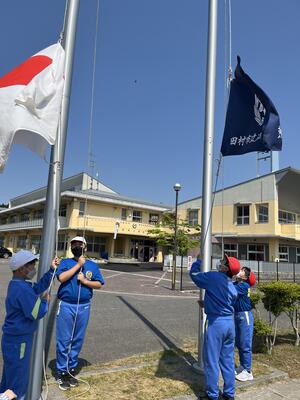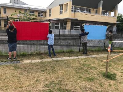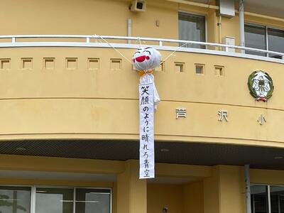 昨年度の卒業生が運動会などの行事のために、3月に大きなテルテル坊主を作り、残していってくれました。今日の朝、その思いの詰まったあしっ子テルテル坊主を校舎に飾りました。あしっ子卒業生たちの願いは天に届き、そして、あしっ子たちの元気な歓声が響き渡り晴れることを願っています!