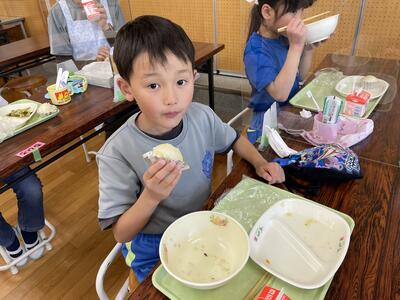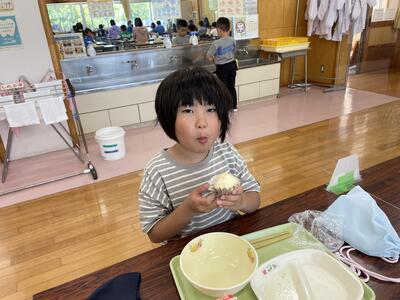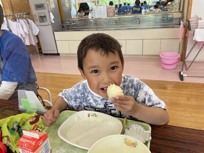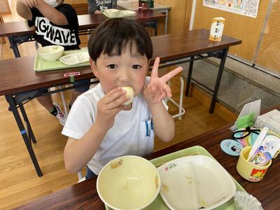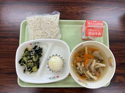 今日の給食は 白だしうどん わかめあえ てづくりチーズむしパン 牛乳 でした。午前中は運動会全体練習があり、みんなおなかもすいていて、今日はより一層おいしくいただきました!