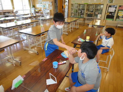 昨日と今日の2日間、健康委員会の4・5・6年生が1年生に歯みがき指導をしました。歯ブラシの当て方や持ち方などをよく見て優しく言葉をかけてくれました。
