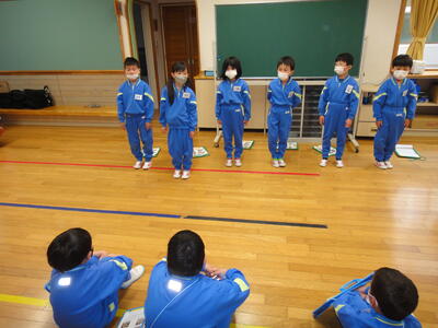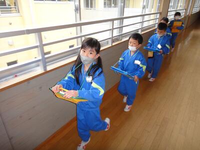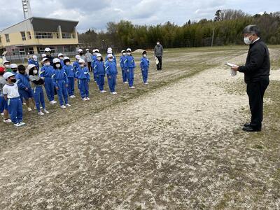 校庭で、校長先生と「おかしもち」の合言葉について確認しました。みんなしっかりと放送を聞いて静かに素早く行動することができました。こういった「自分で判断し行動できる力」を今後もつけていきたいと思います。