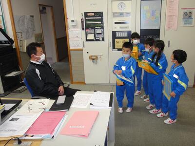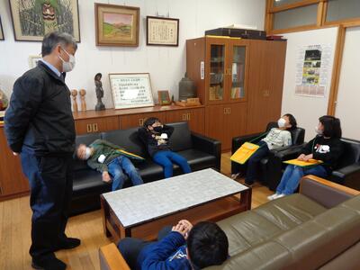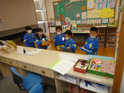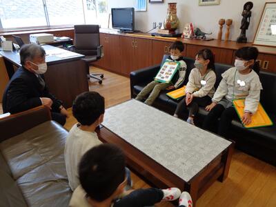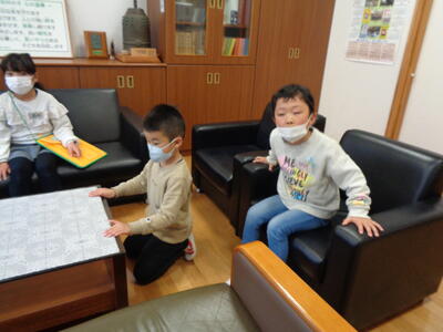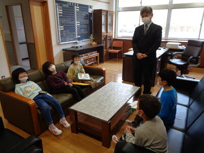 今日の2時間目に、1・2年生は校長先生とお話をしました。昨日の学校探検の時に校長先生が不在だったため、今日、班ごとに校長室に入室しました。初めて入る子は、校長室の中をよーく見回したり、ソファーの座り心地を確かめたりと、興味がつきなかったようです。たくさんお話できたかな?