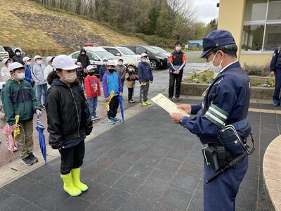 金曜日に第1回交通安全教室を行いました。開会式では6年生の代表児童が委嘱状を交付され、田村警察署員さんから登下校の時の歩き方についてご指導をいただきました。