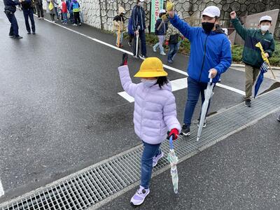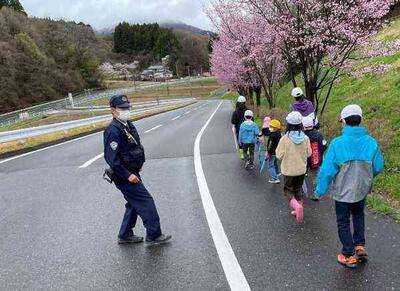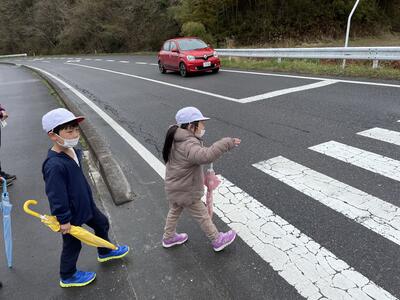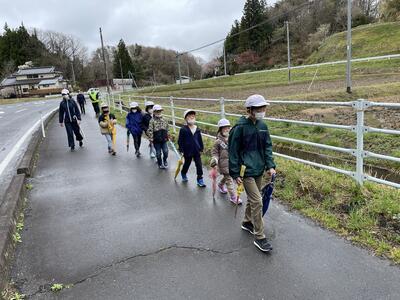 その後、通学班ごとに実際に歩いて横断歩道の正しい渡り方や、安全な歩道の歩き方について確認しました。田村警察署の方もあしざわの子どもたちと一緒に歩いていただきました。今回の教室をきっかけに「自分の命は自分で守る」子ども達を育てていければと思います。ご来校いただいた警察官の皆様、ありがとうございました。