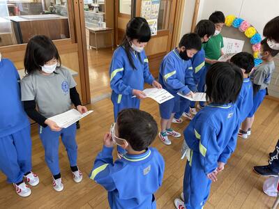 今日のお昼休みに、4年生が1年生の教室に来て、1年生を迎える会の招待状を渡しに来てくれました。1年生はみんなうれしくて、練習中のひらがなを一生懸命読んでいました。迎える会は明後日です。みんな待ちきれない様子でした。楽しみですね!