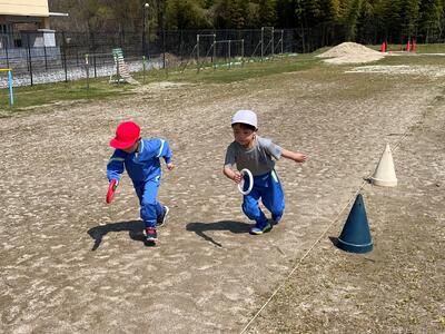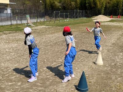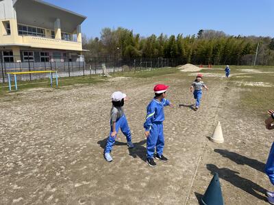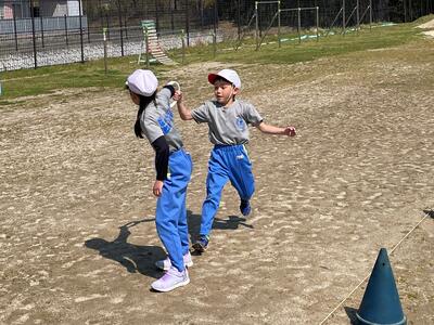 2022年4月20日 17時03分来月のあしっこ大運動会に向けて、1・2年生がリレーの練習をしました。まだバトンパスの練習をしていないため、今日は輪投げ輪を使ってのリレーでした。澄み切った青空の下、元気いっぱい走り、せいいっぱいの声援を送っていました。来週には紅白も決定します。すでにやる気満々です!