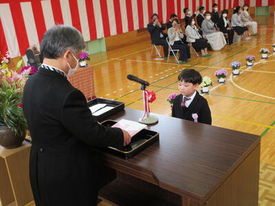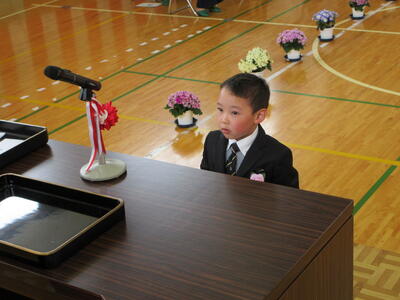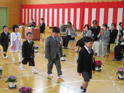 着任式・始業式の次に行われたのは、入学式です。かわいらしい新入生6名が芦沢小学校へ仲間入りをしました。堂々とした入場の後、担任の先生に名前を呼ばれるとはっきりと「はい!」と元気いっぱいの返事を聞かせてくれました。教室に戻ってからは緊張もほぐれたようで、みんなリラックスした表情も見せてくれました。明日からあしっ子のみんなと、たくさん勉強してたくさん遊ぼうね!